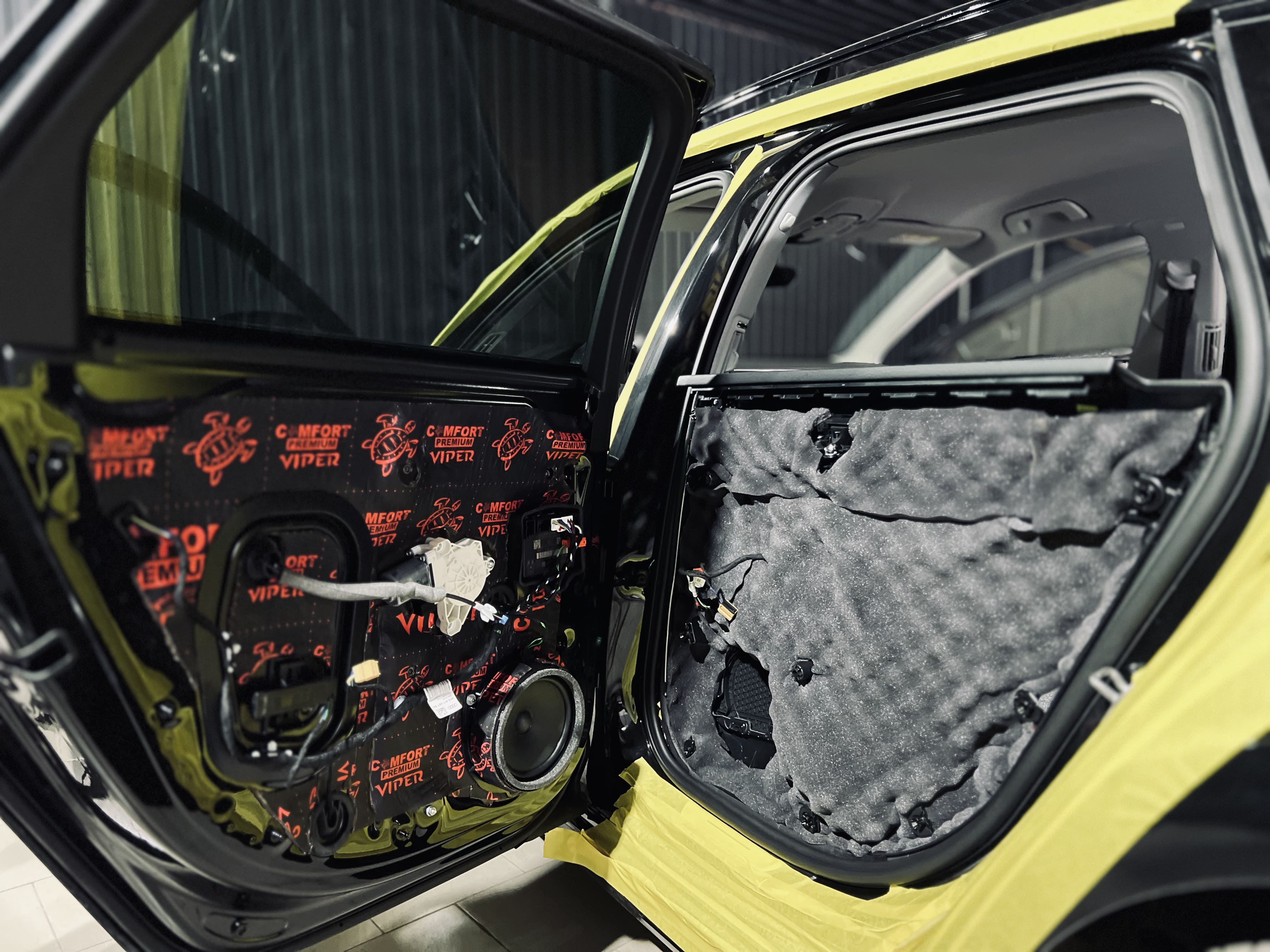 Двери и дверь багажника – важные элементы шумоизоляции, через которые проникают звуки улицы и ветра. Мы обработали их в несколько слоев, чтобы обеспечить тишину и улучшить акустику.