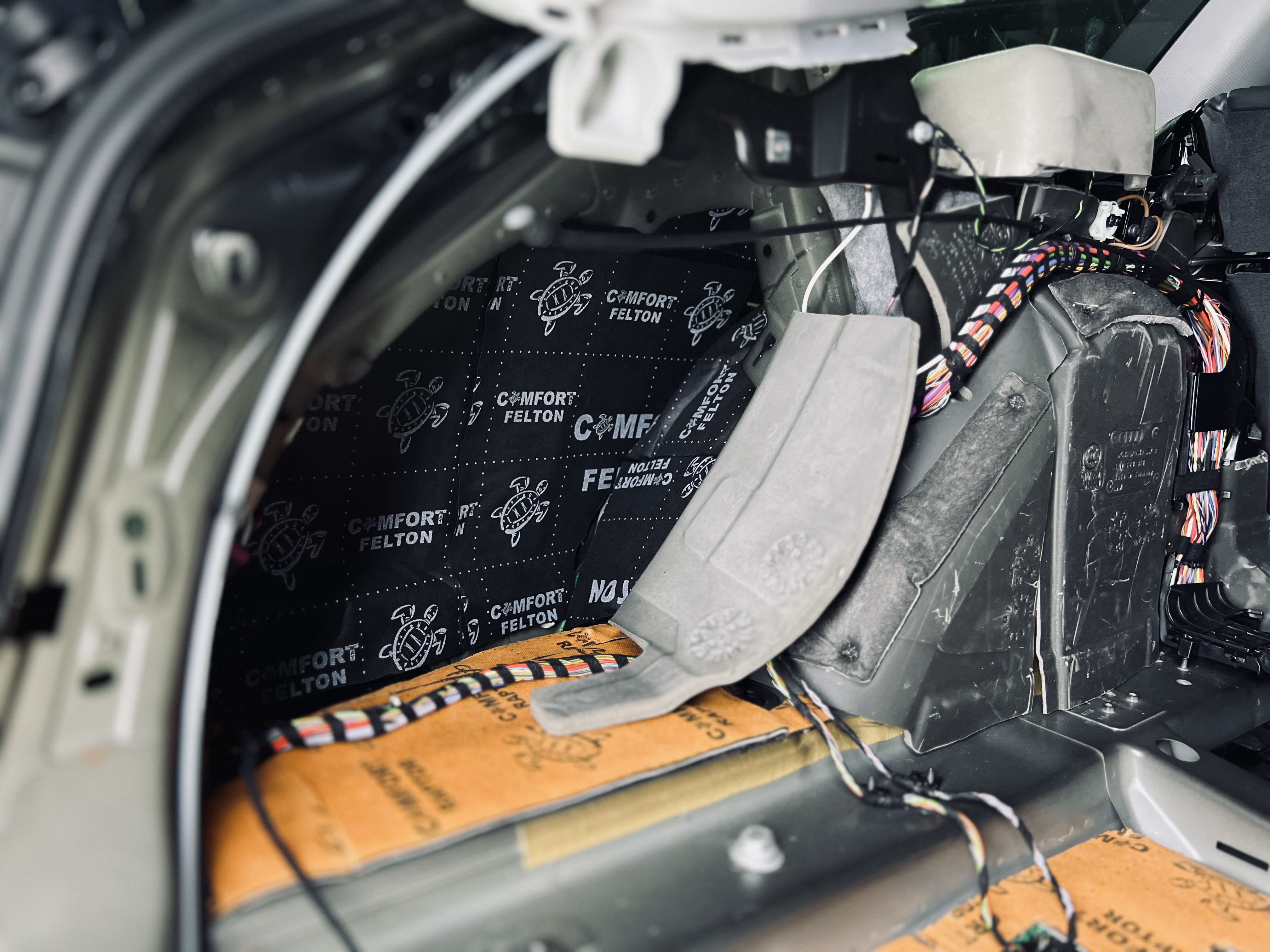 Багажник и днище – ключевые источники шума от колес, подвески и дорожного покрытия. Мы использовали многослойную изоляцию для устранения вибраций и гула.