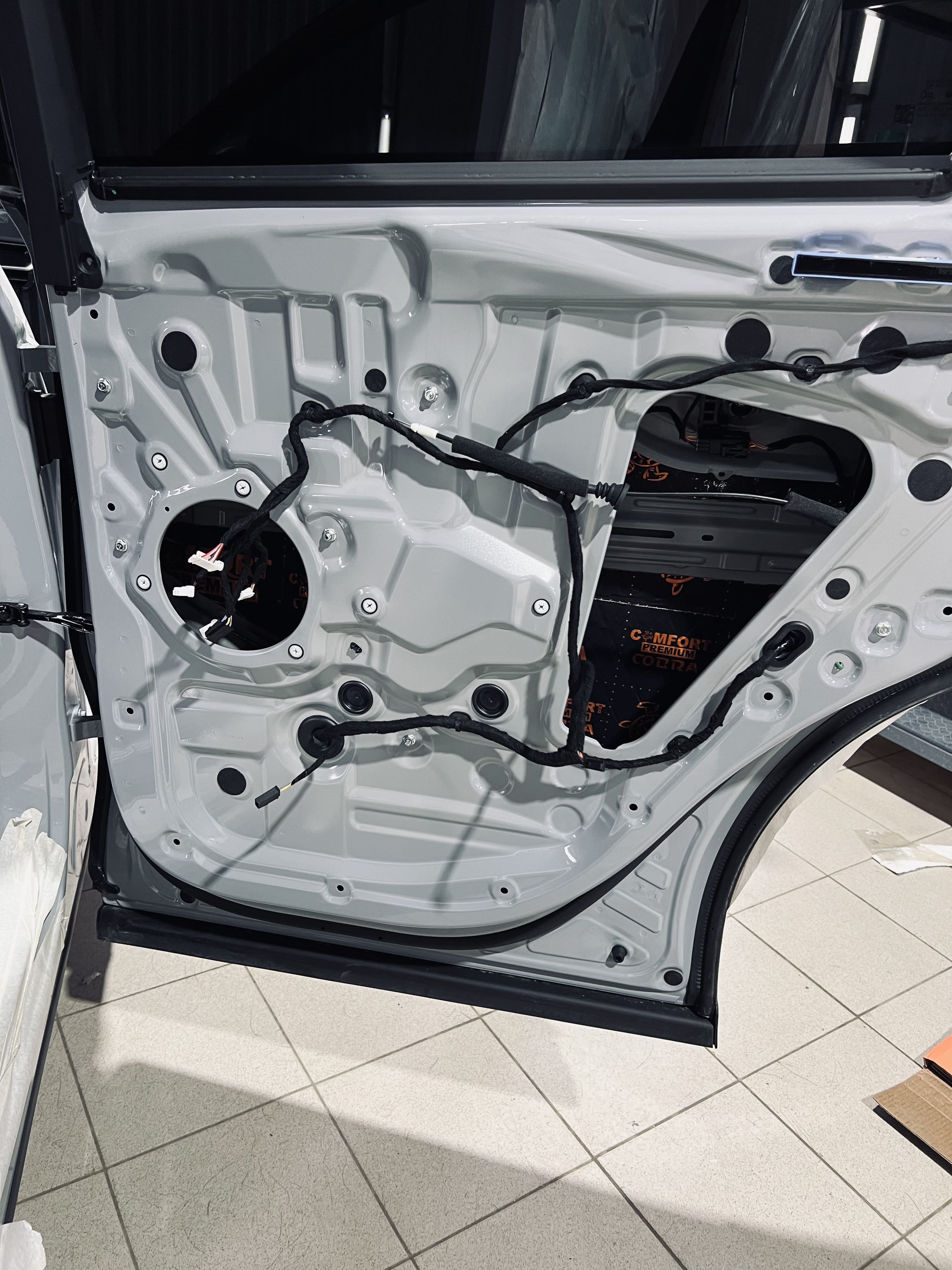 Двери и дверь багажника – важные элементы шумоизоляции, через которые проникают звуки улицы и ветра. Мы обработали их в несколько слоев, чтобы обеспечить тишину и улучшить акустику.