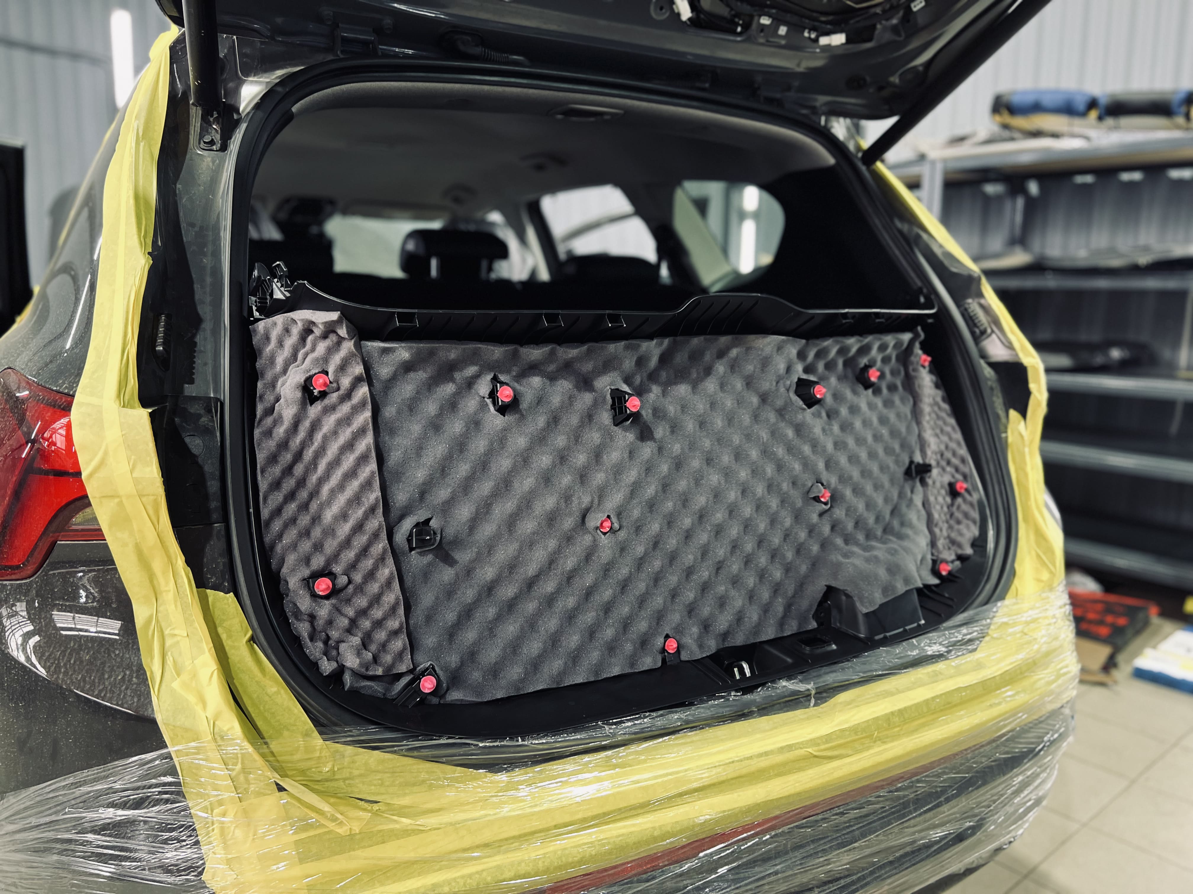 Боковины багажника дополнительно покрыли шумопоглощающими волнами Comfort Mat Тишина Volna.