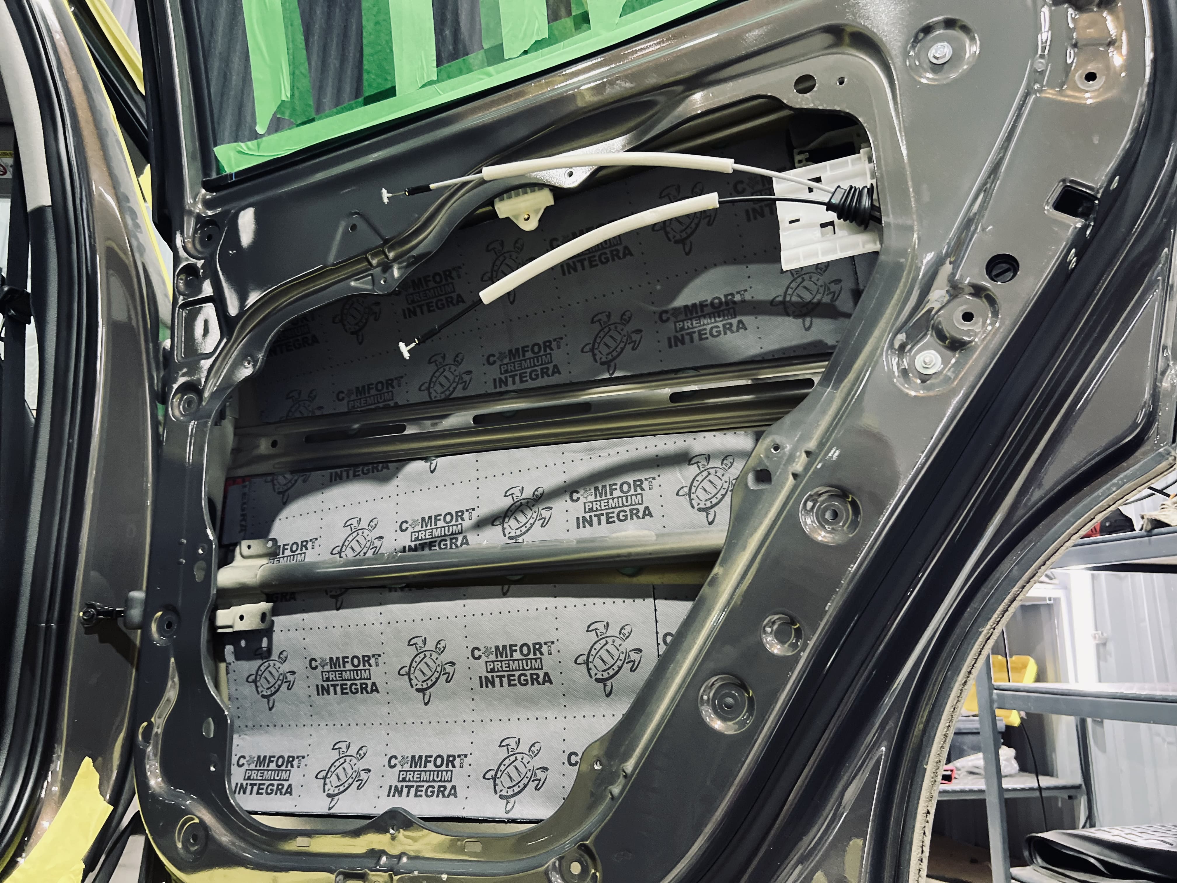 Вторым слоем на двери уложили шумоизоляцию Comfort Mat Integra, поглощающую внешние шумы и добавляющую теплоизоляцию.