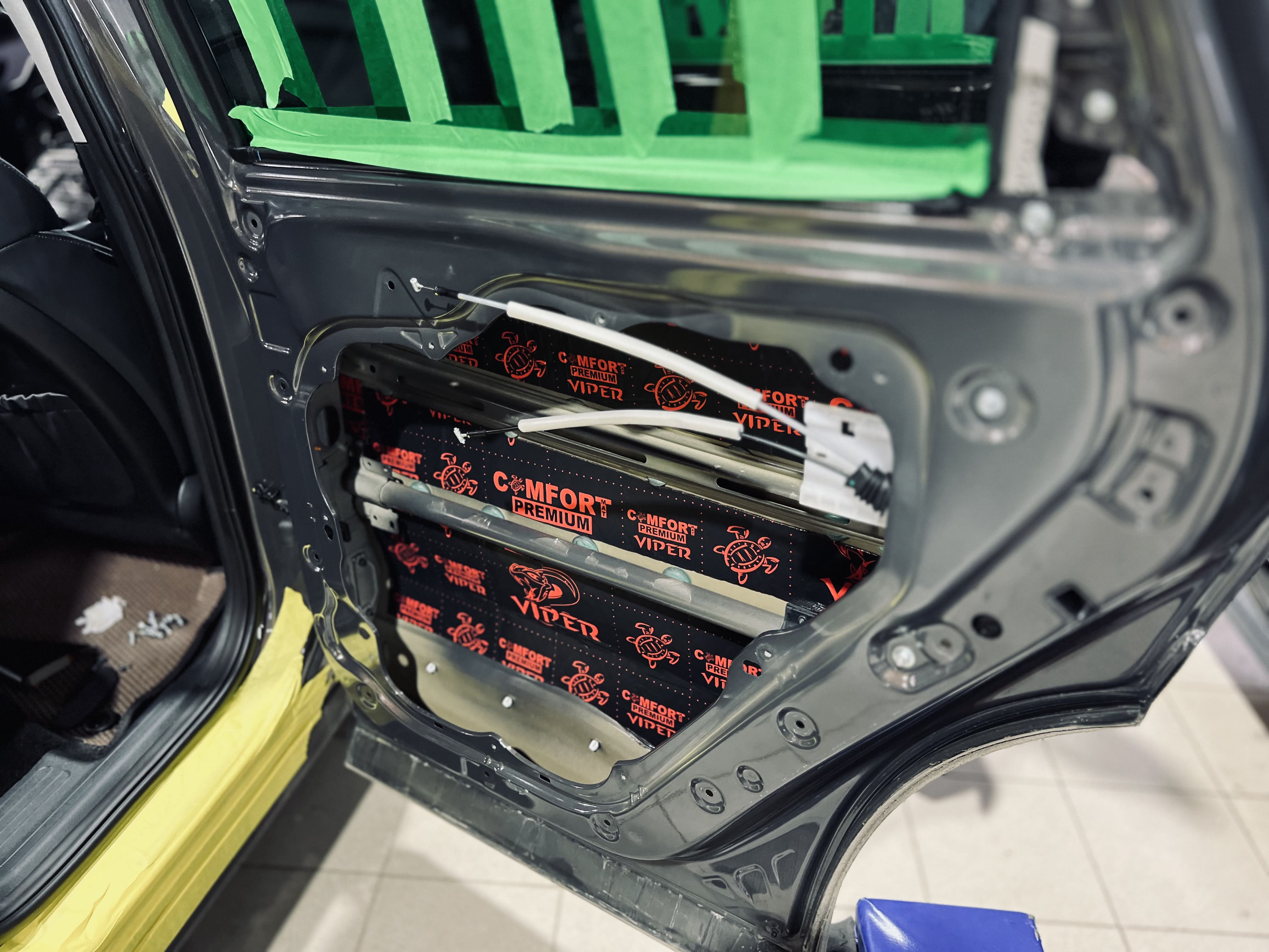 Первым слоем нанесли виброизоляцию Comfort Mat Viper.