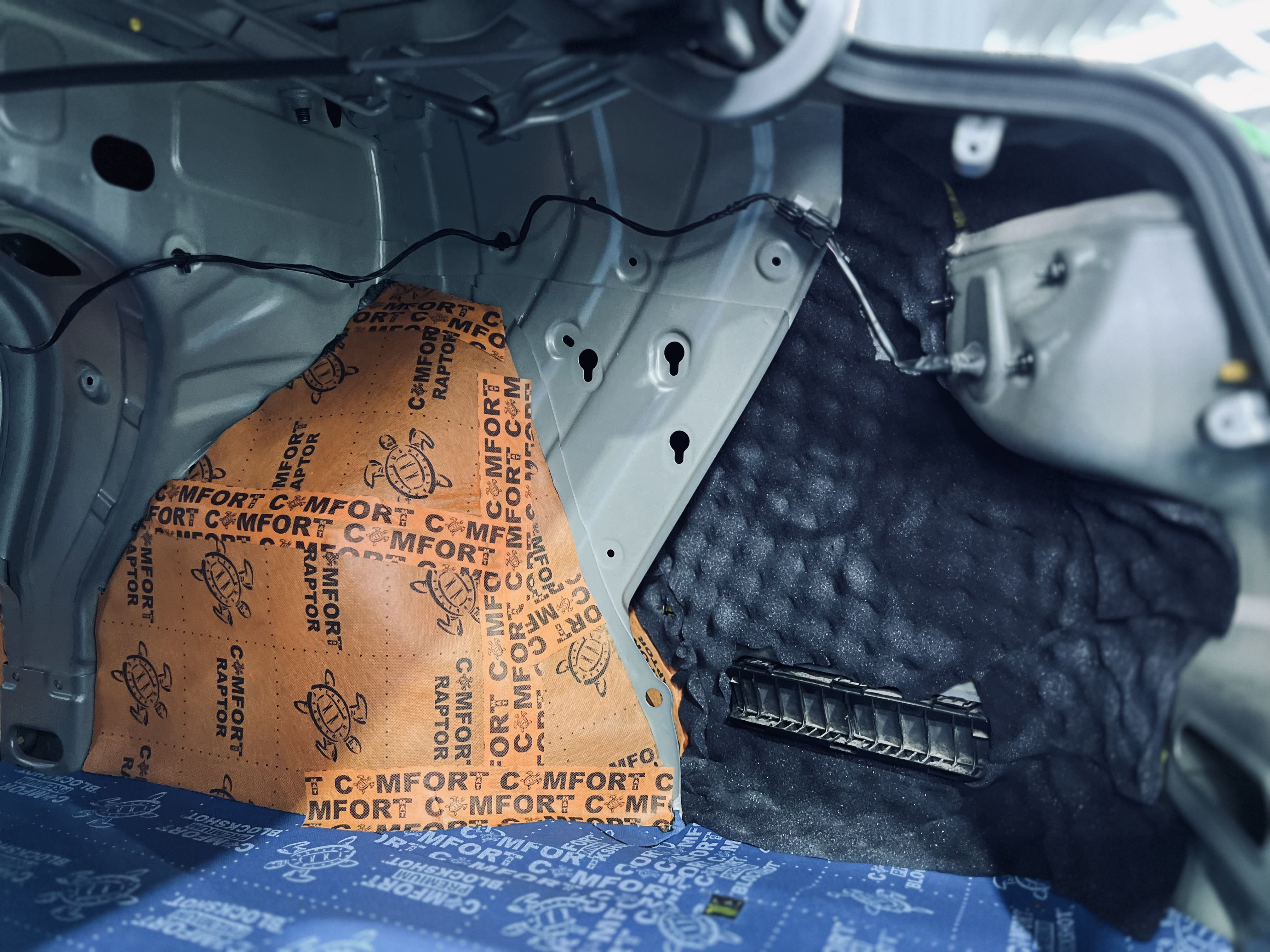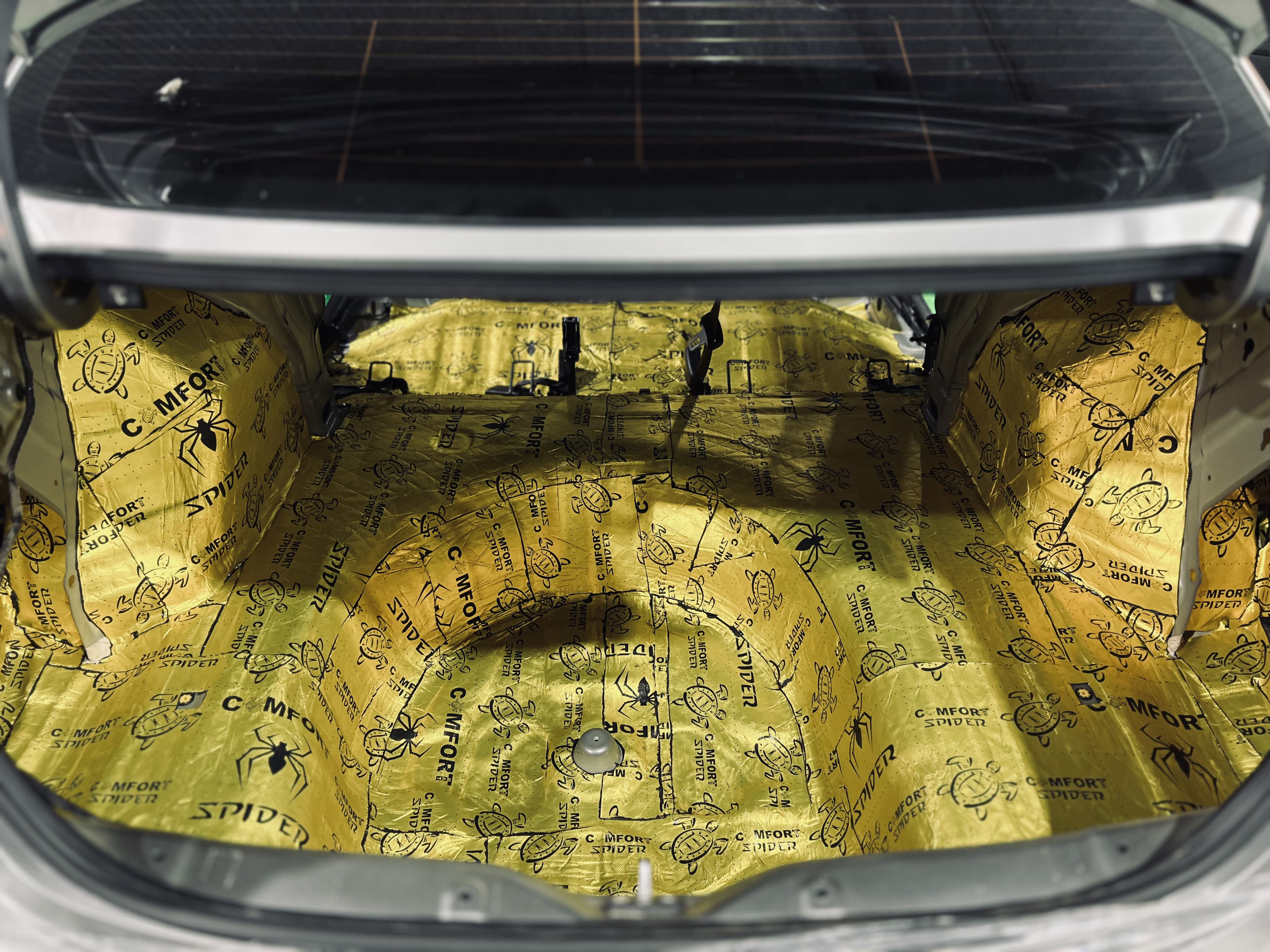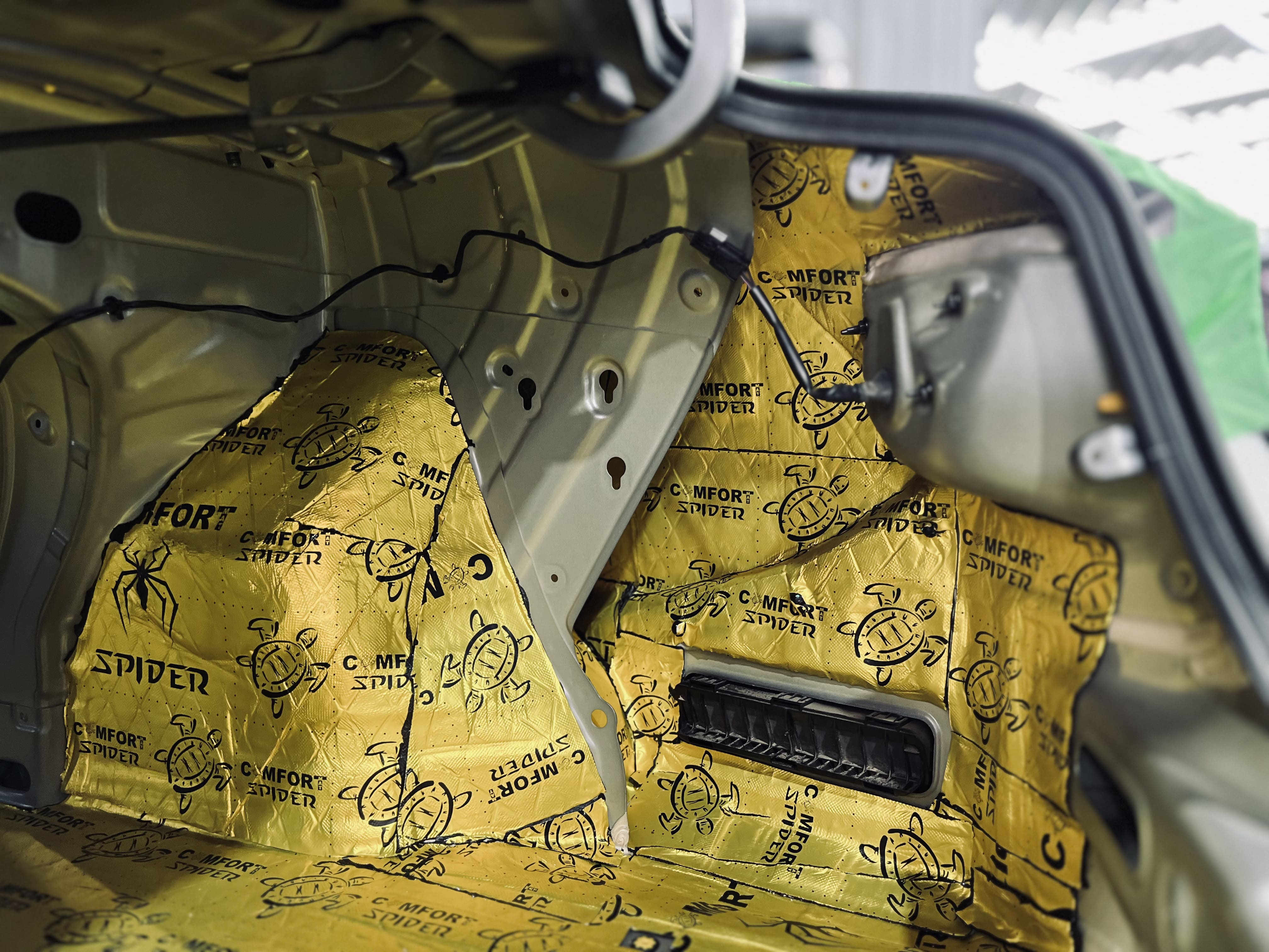 Багажник и днище – основные источники шума от колес, подвески и дорожного покрытия. Мы использовали многослойную изоляцию, чтобы устранить вибрации и гул.