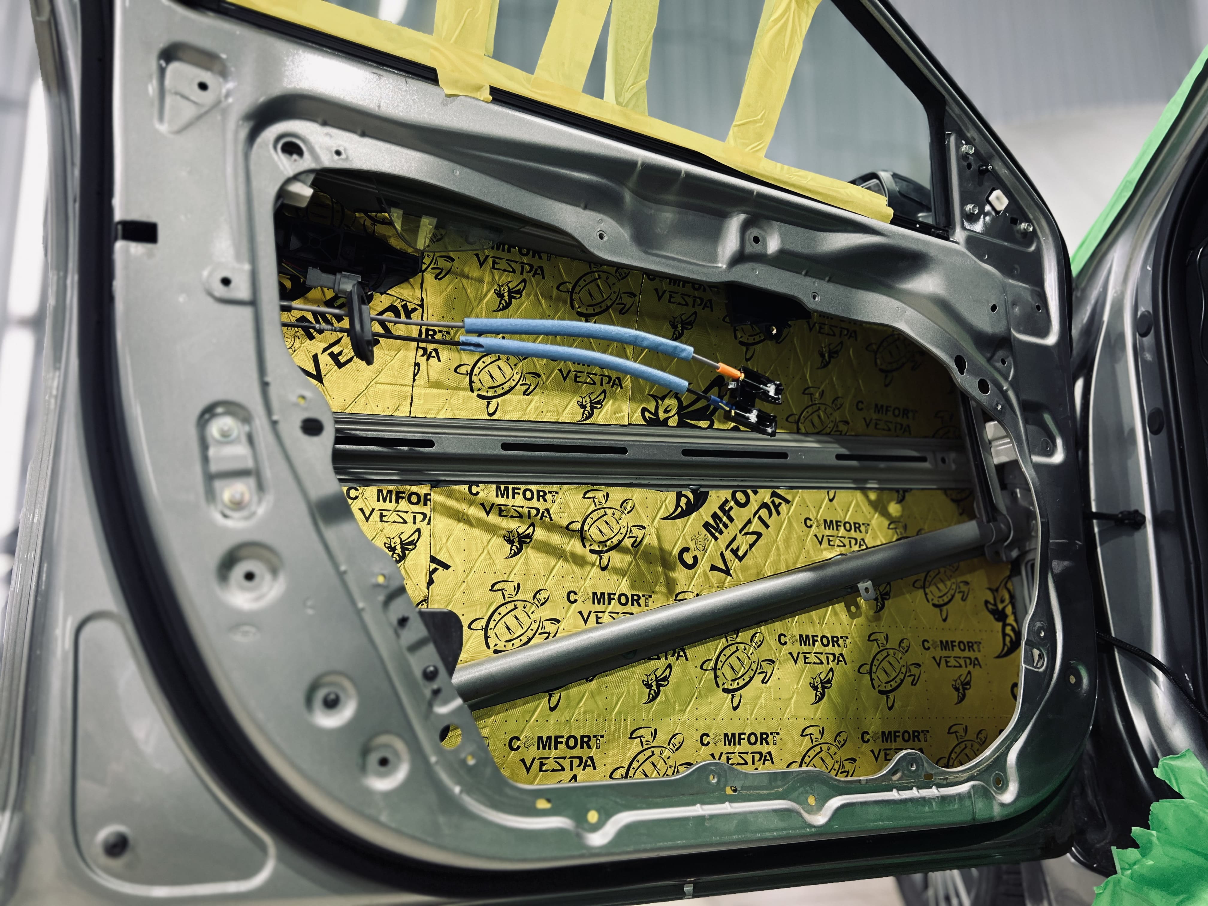 Двери и дверь багажника – важные элементы шумоизоляции, через которые проникают звуки улицы и ветра. Мы обработали их в несколько слоев, чтобы обеспечить тишину и улучшить акустику.