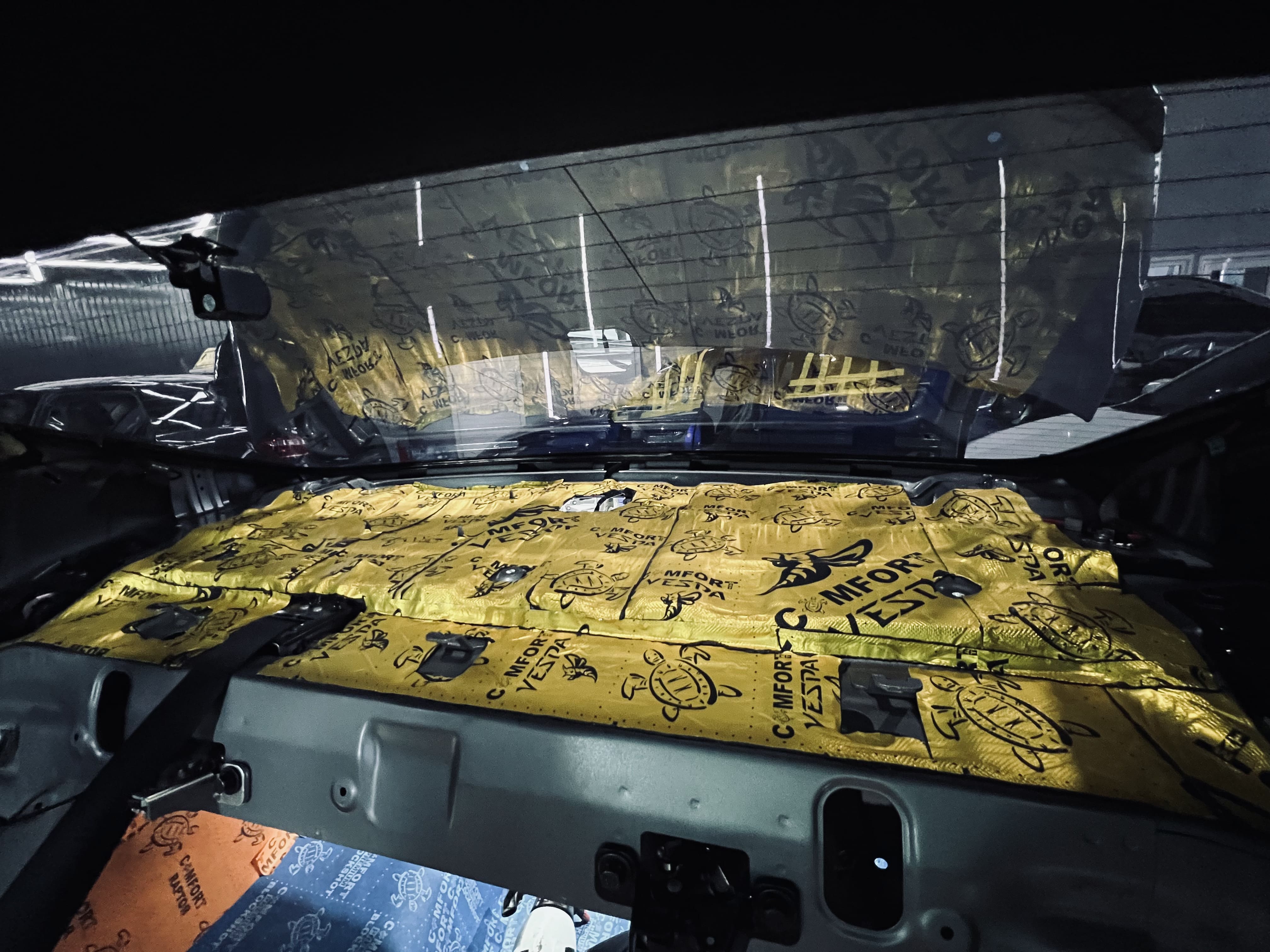 Крыша автомобиля часто пропускает шум ветра и дождя. Мы обработали ее в два слоя, чтобы обеспечить тишину в салоне даже в непогоду.