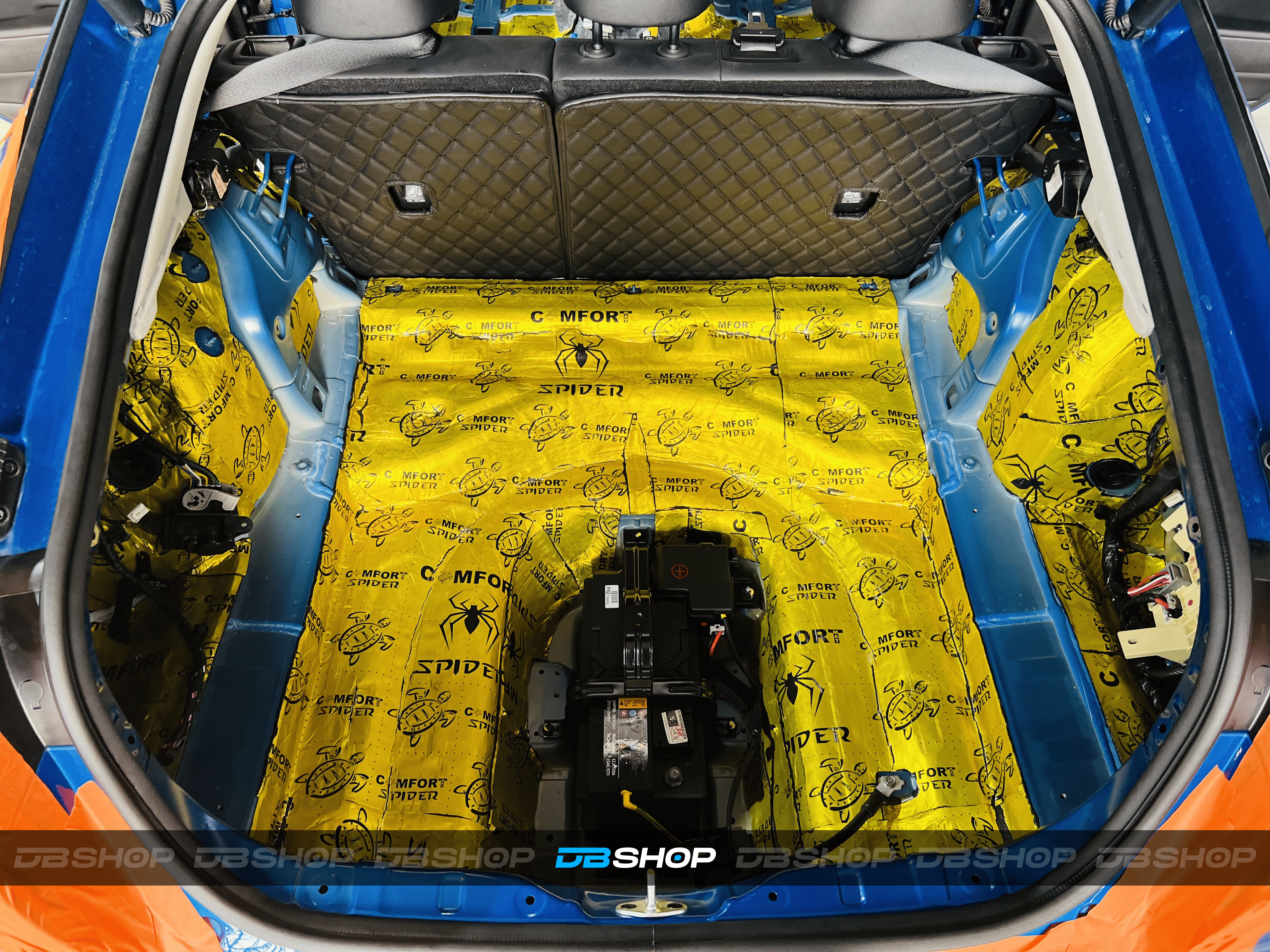 Багажник и днище – основные источники шума от колес, подвески и дорожного покрытия. Мы использовали многослойную изоляцию для устранения вибраций и гула.