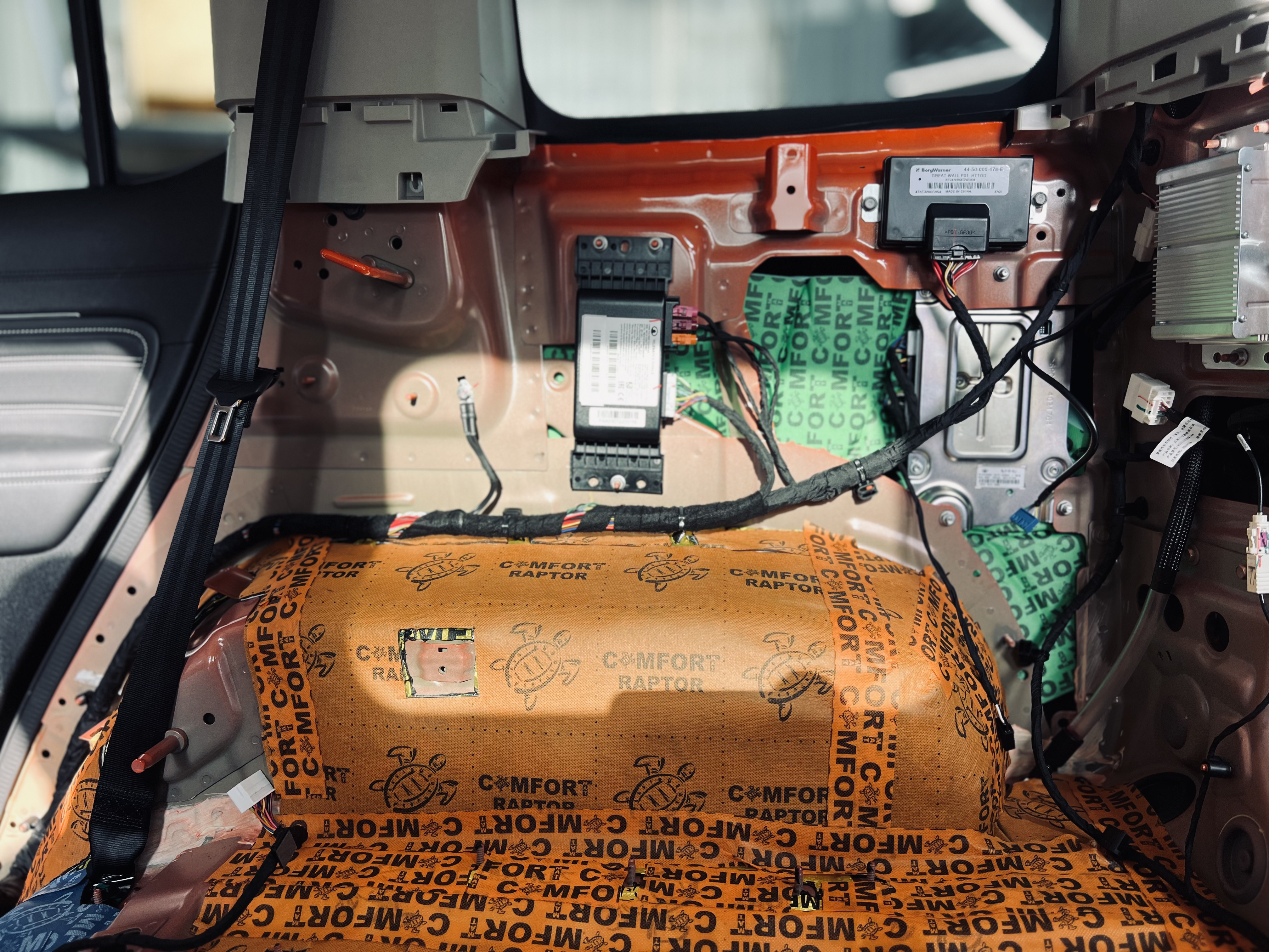 Материалы Comfort Mat обеспечили не только тишину, но и дополнительную теплоизоляцию и защиту кузова от коррозии. Фотографии этапов работы демонстрируют профессионализм и внимание к деталям. Если вы хотите, чтобы ваш Tank 300 сочетал внедорожную мощь с комфортом, эта шумоизоляция – идеальный выбор!