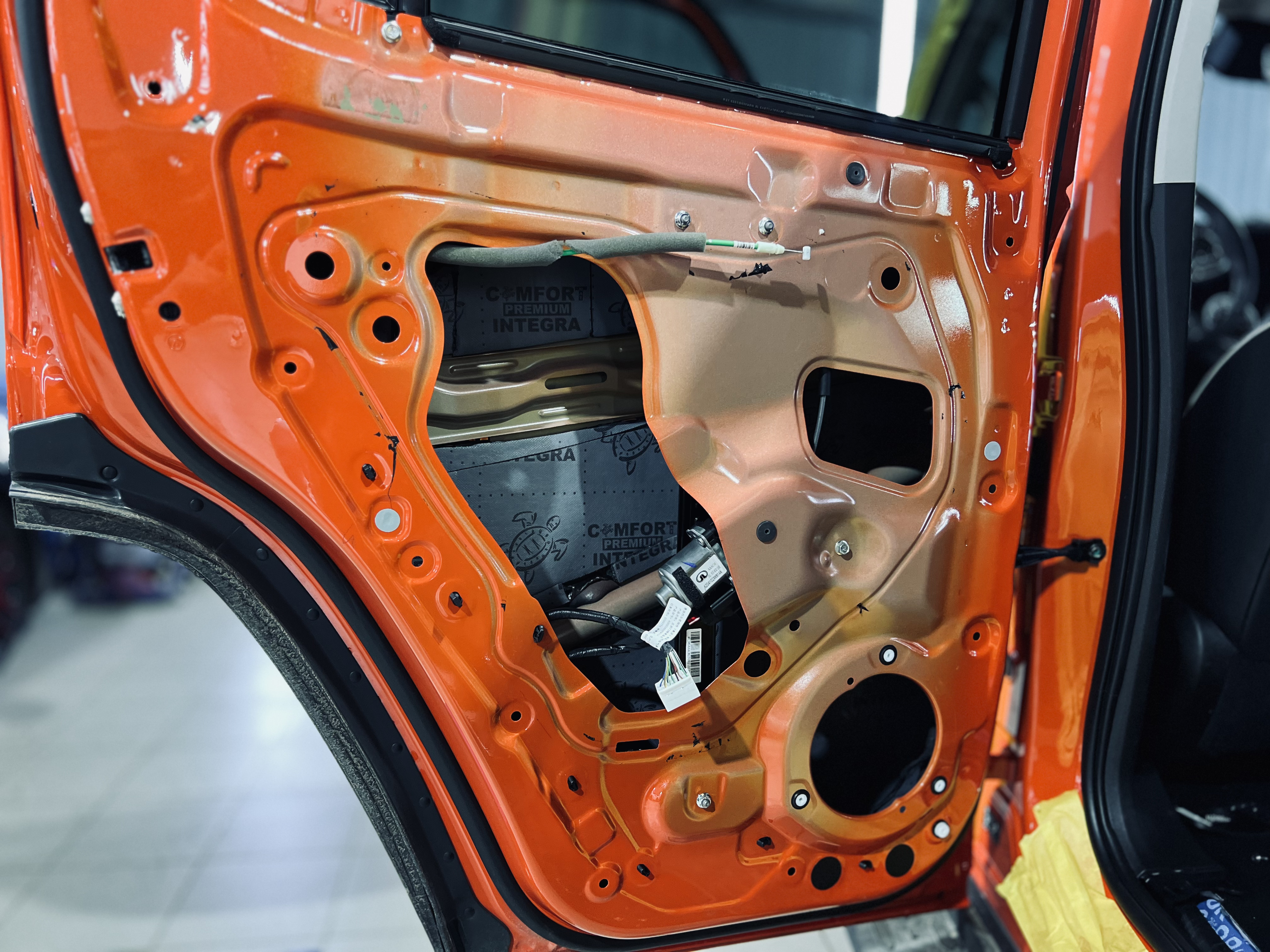 Двери и дверь багажника – важные элементы шумоизоляции, через которые проникают звуки улицы и ветра. Мы обработали их в несколько слоев, чтобы обеспечить тишину и улучшить акустику.