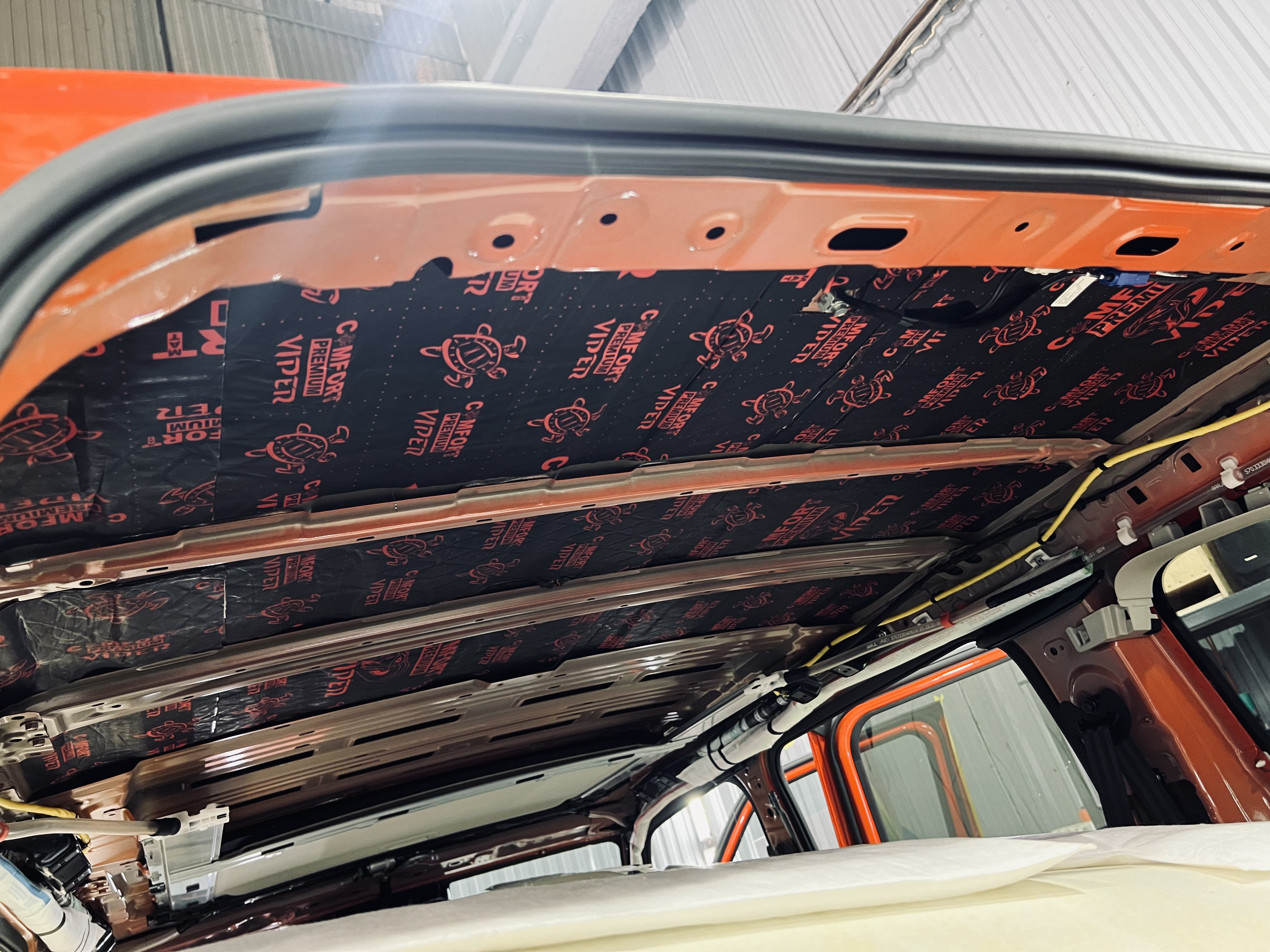 Крыша автомобиля часто пропускает шум ветра и дождя. Мы обработали ее в два слоя, чтобы обеспечить тишину в салоне даже в непогоду.